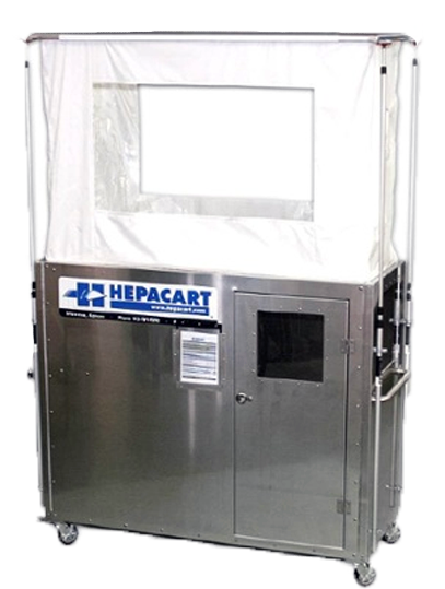The HEPACART™ environment containment cart is manufactured in durable, easy-to-clean aluminum and requires no assembly prior to usage. Uses include – but are not limited to – removing ceiling tiles, minor duct work or electrical work above ceilings in hospitals and other patient care facilities, as well as in data centers and server rooms. Additionally, HEPACART™ is the only environment containment cart with an embedded Negative Air Machine that is independently inspected and certified. Each HEPACART™ has swivel-lock, non-marring casters that protect floors. Each wheel assembly is rated for 900 lbs.